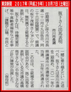 こんばんは、坂下しげきです。 本日は、地域のお祭り5ヶ所にお邪魔致しました。 これからの市川について、様々なご意見を頂戴致しました。 また、16:00から市川駅北口にて、安倍晋三総理大臣をお迎えしての街頭演説会に参加致し […]