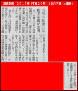 おはようございます。坂下しげきです。 本日は、行徳駅にて朝の活動を行いました。 お声掛け頂きまして、まことにありがとうございました。 本日は、救急医療体制についての県議会リポートでの活動でした。 衆議院総選挙も迫ってきて […]