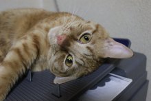 このようにノビをして、コピー機から降りるときにポチっと電源を押してしまうようです。
