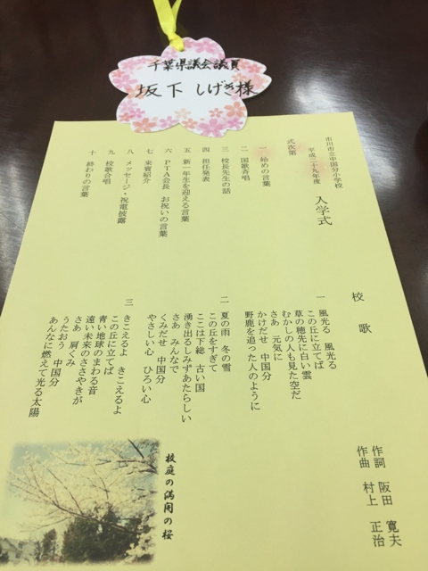 2017年4月10日 / 最終更新日 : 2021年5月1日 坂下 しげき 活動報告 2017 4/10 小学校入学式 おはようございます。坂下しげきです。 中国分小学校の入学式に参加 ご入学、おめでとうございます。 現在、ご来賓の方々と待機中です。 FacebookXBlueskyCopy