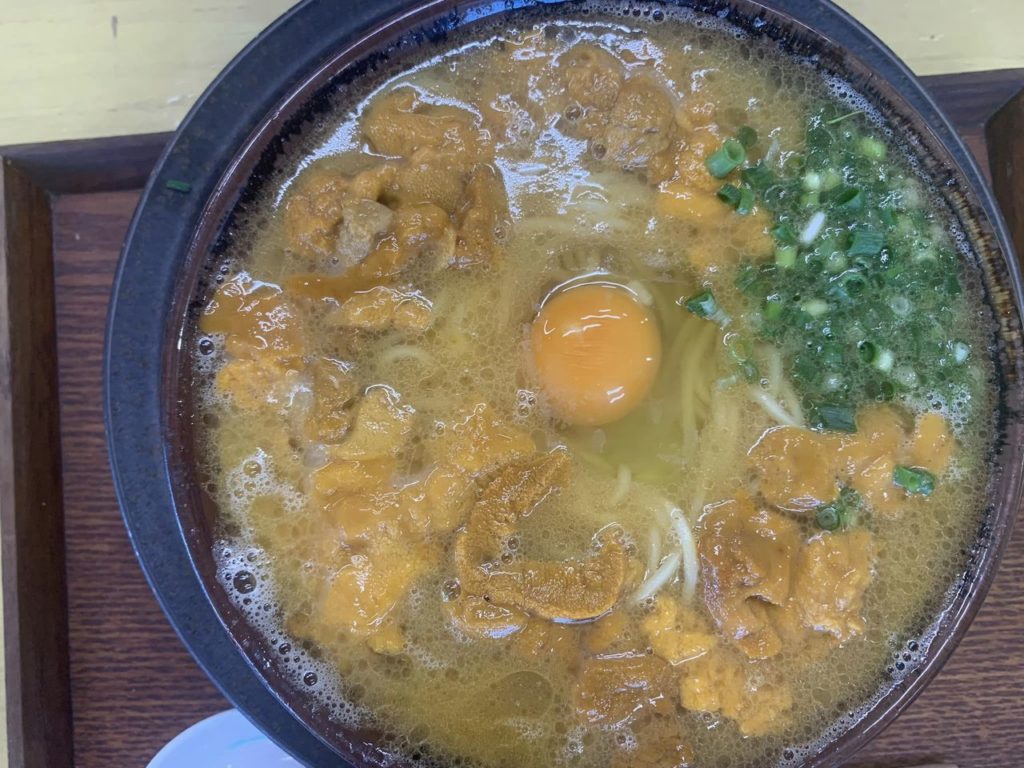他県ナンバーもたくさん。ここで昼食。(名物なのか不明ですがうにうにパラダイスラーメンを頼んだ方がいたので記念に)