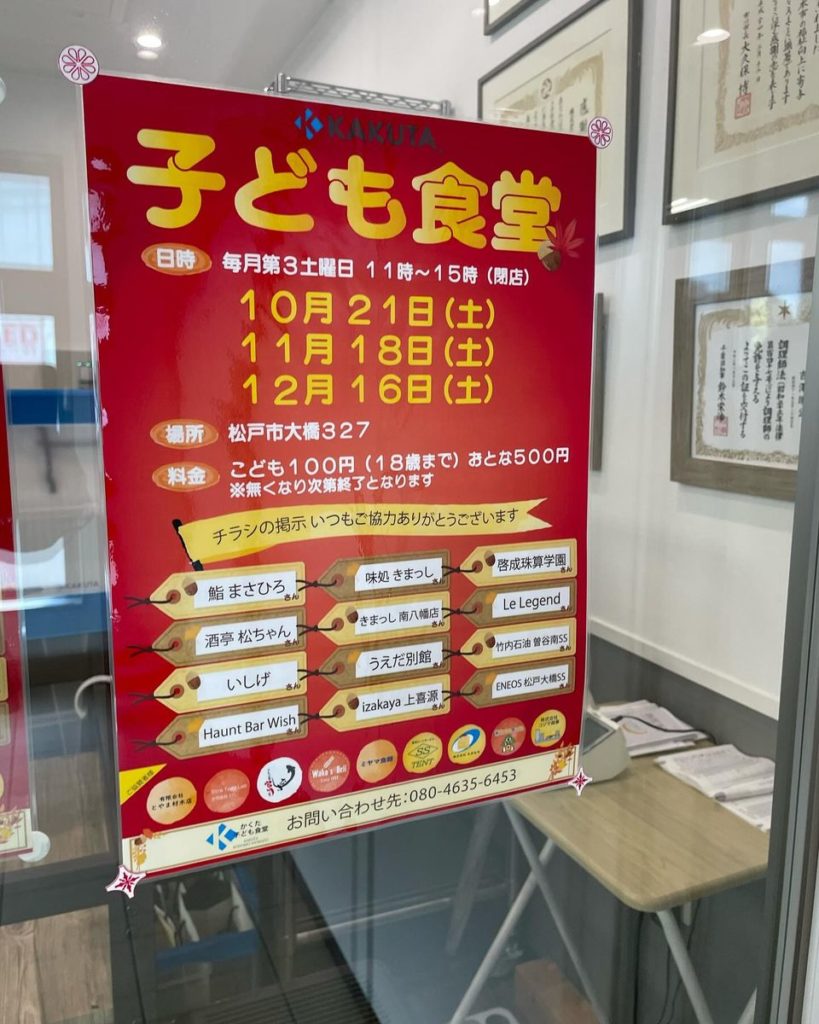 2023年10月21日 / 最終更新日 : 2024年7月9日 D 活動報告 231021子ども食堂 千葉県議会議員 政治にシゲキ 坂下しげき 〜子ども食堂〜 #子ども食堂 #松戸市 #大人500円子ども100円 #千葉県議会議員 #政治にシゲキ #坂下しげき #市民の声が原点 FacebookXBlueskyCopy