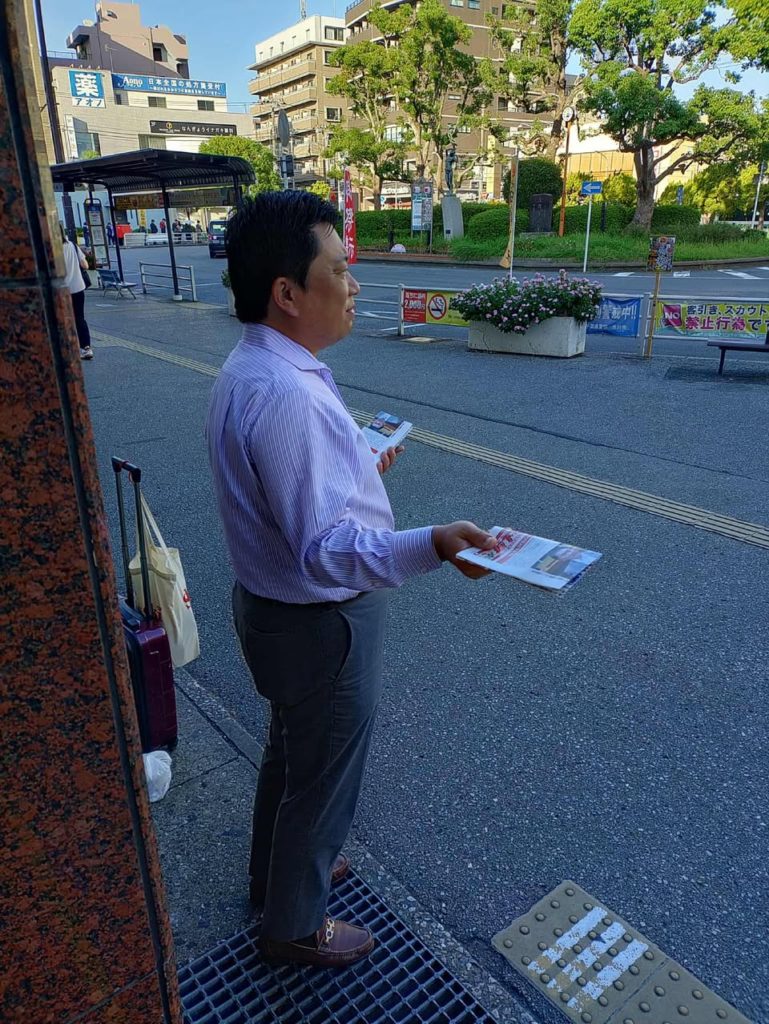 今朝は、南行徳駅にて朝の御挨拶をさせていただきました。