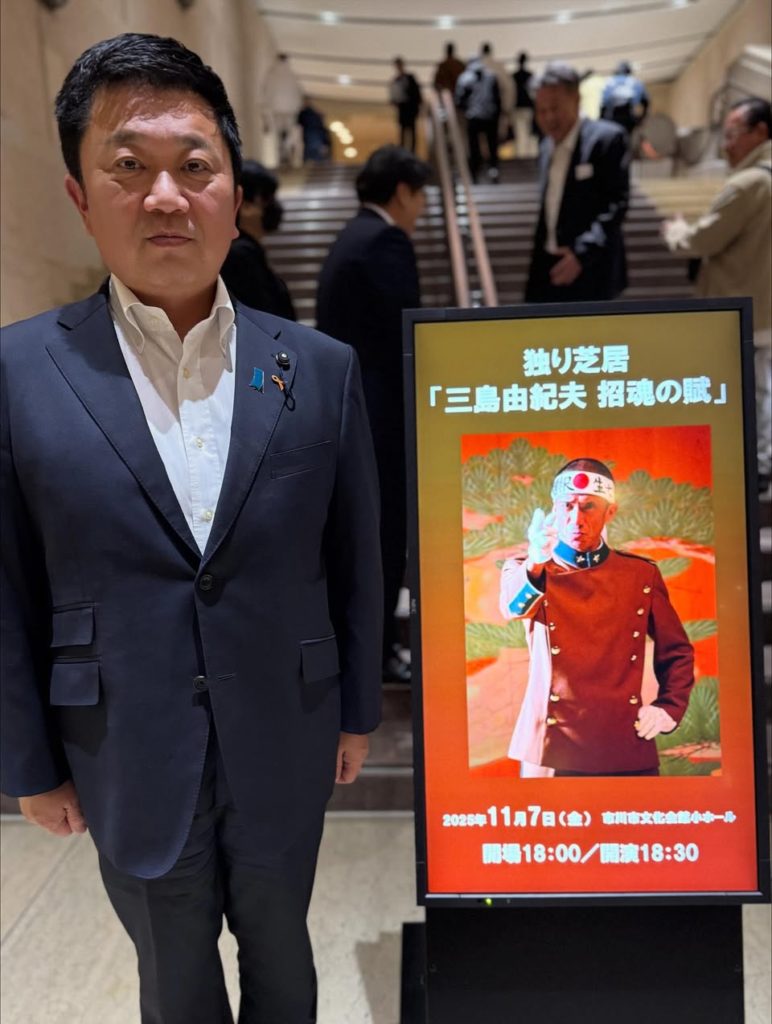2025年11月7日 / 最終更新日 : 2025年12月10日 D 活動報告 251107〜独り芝居 三島由紀夫 招魂の賦〜 千葉県議会議員 政治にシゲキ坂下しげき 〜11/7 独り芝居 三島由紀夫 招魂の賦〜 市川市文化会館 #市川市文化会館 #独り芝居 #三島由紀夫 #招魂の賦 #千葉県議会議員 #政治にシゲキ #坂下しげき #市民の声が原点 #channelshigeki FacebookXBlueskyCopy