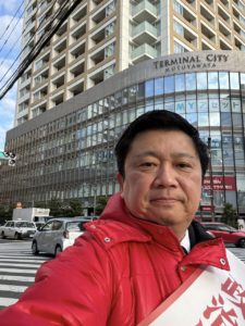 市川駅南口での朝のご挨拶→片付け