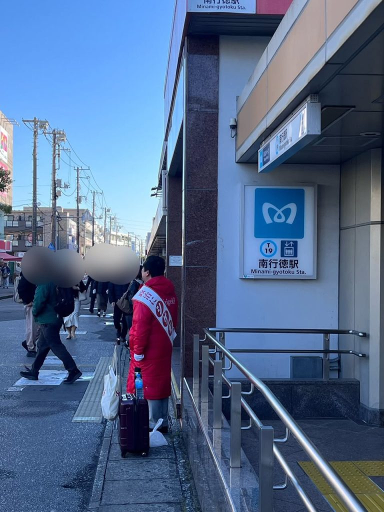 今朝は、南行徳駅にて朝の御挨拶をさせていただきました。